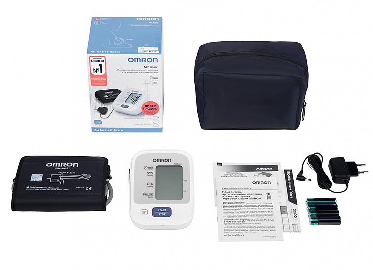OMRON M2 Basic с адаптером и новой универсальной манжетой (22-42 см) - это компактный, полностью автоматический измеритель артериального давления и частоты пульса, работающий на основе осциллометрического метода