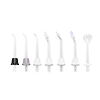 В комплект входит 7 насадок для пользователей с разными потребностями: 3 стандартные, ортодонтальная для брекетов, пародонтальная с мягким наконечником для чувствительных десен, для очищения языка, пучковая насадка для очищения имплантов, мостов, коронок.