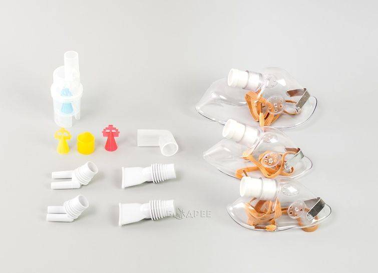 Доступное лечение заболеваний. Три пистона в комплекте позволяют пользователю самостоятельно регулировать размер частиц лекарственного аэрозоля. В зависимости от типа заболевания выбирается насадка для образования мелких (0,5-3 мкм), средних (3-5 мкм) или крупных (6-10 мкм) частиц лекарства. Для непосредственного воздействия на очаг инфекции предусмотрены мундштук для ингалирования через рот и несколько насадок для носа.