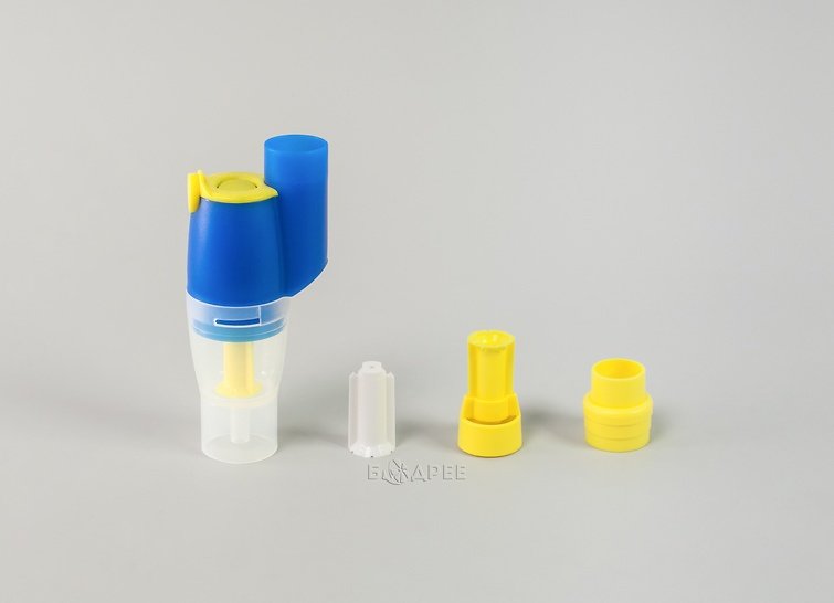 Регулировка размера распыляемых частиц. В комплект к небулайзеру прилагаются три пистона. Они позволяют самостоятельно регулировать размер распыляемых частиц лекарственного аэрозоля. Пистон А превращает лекарство в частицы размером 1-3 мкм и отвечает за лечение верхних дыхательных путей. Пистон B разбивает средство на частицы размером 2-5 мкм и справляется с лечением трахеи и бронхов. Пистон С (частицы 4-6 мкм) отвечает за лечение нижних дыхательных путей – легких и альвеол.