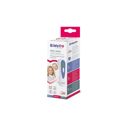 Инфракрасный термометр B.Well MED-3000 – электронное устройство для измерения температуры тела, воздуха и окружающих предметов. Прибор оснащен объемной памятью, звуковыми и цветовыми подсказками.