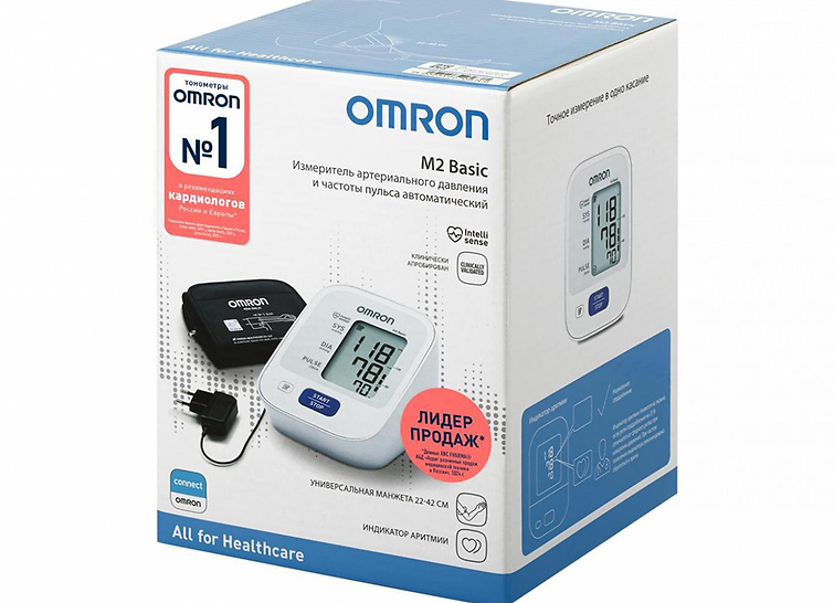 OMRON M2 Basic с адаптером и новой универсальной манжетой (22-42 см) - это компактный, полностью автоматический измеритель артериального давления и частоты пульса, работающий на основе осциллометрического метода